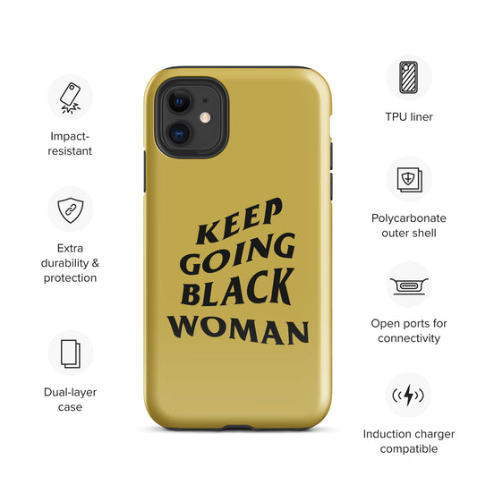 Keep Going Black Woman Tough Case for iPhone® (Gold)