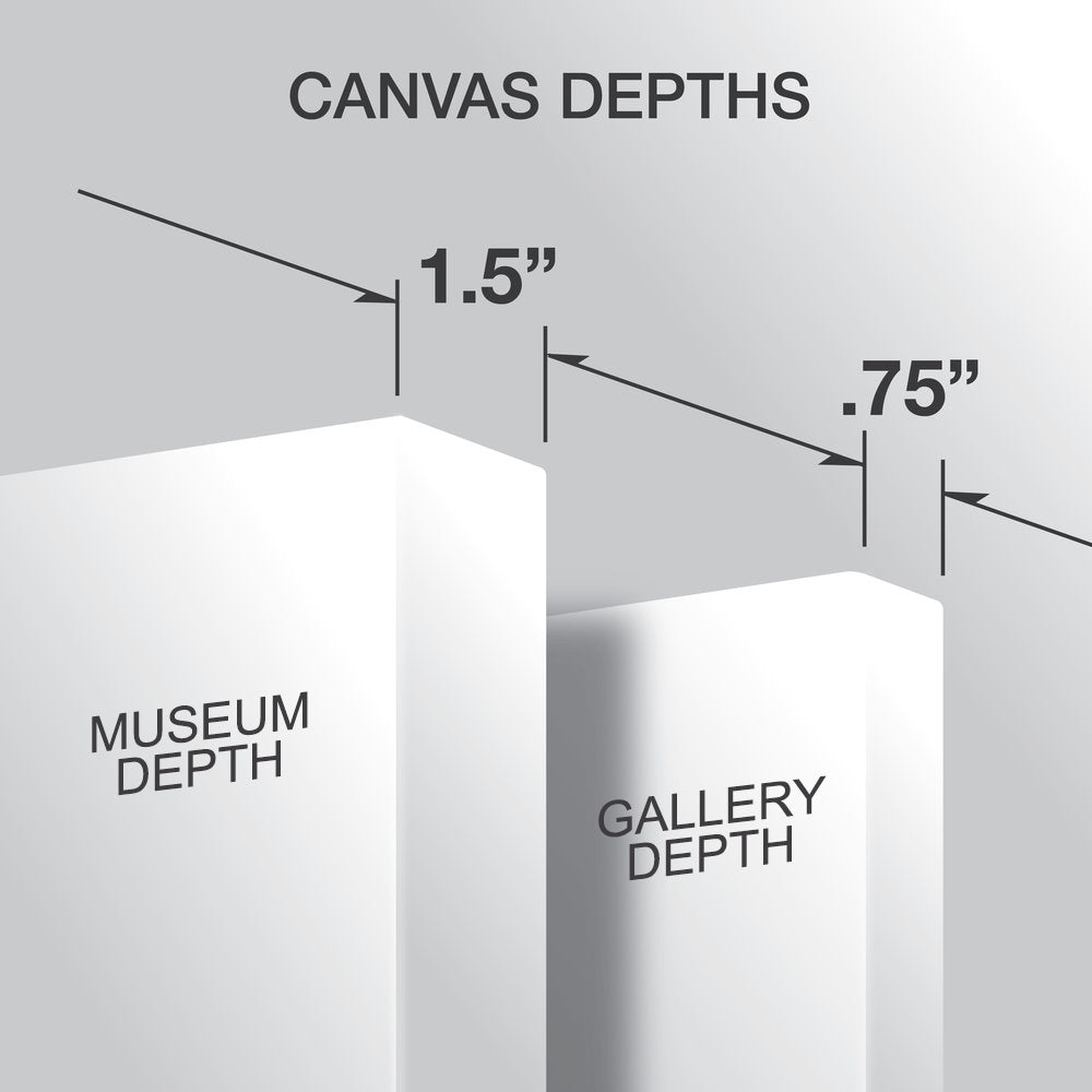 Artwork is printed on high quality canvas with a wood frame & backing. They're available in multiple sizes as well as the Museum Depth (1.5") or Gallery Depth (0.75"). If you would like a larger size or would like a custom canvas, please contact us here.